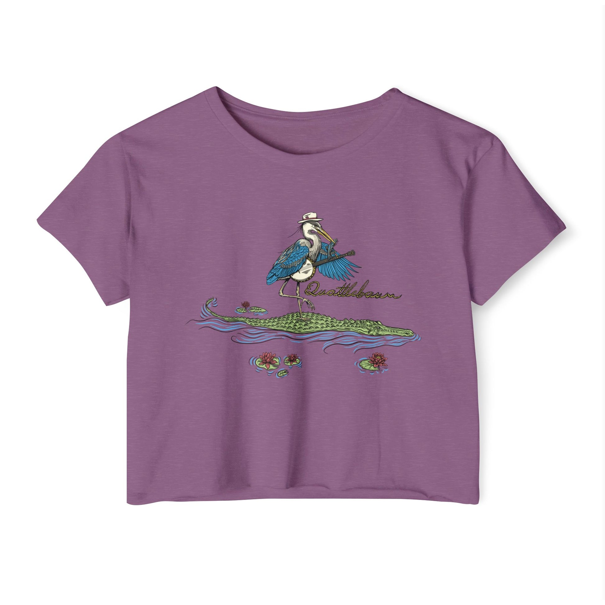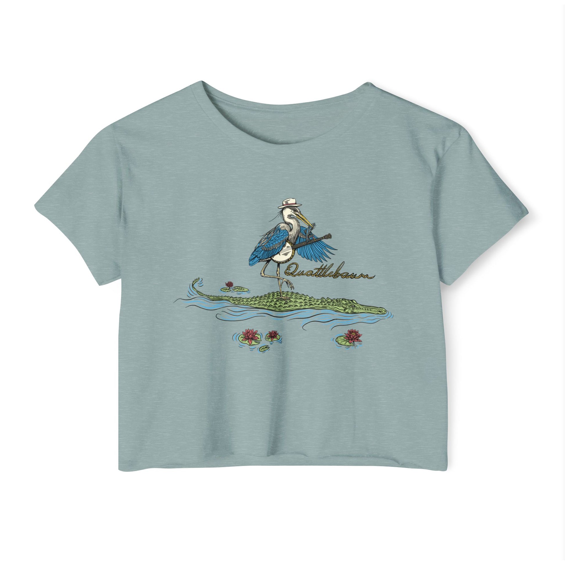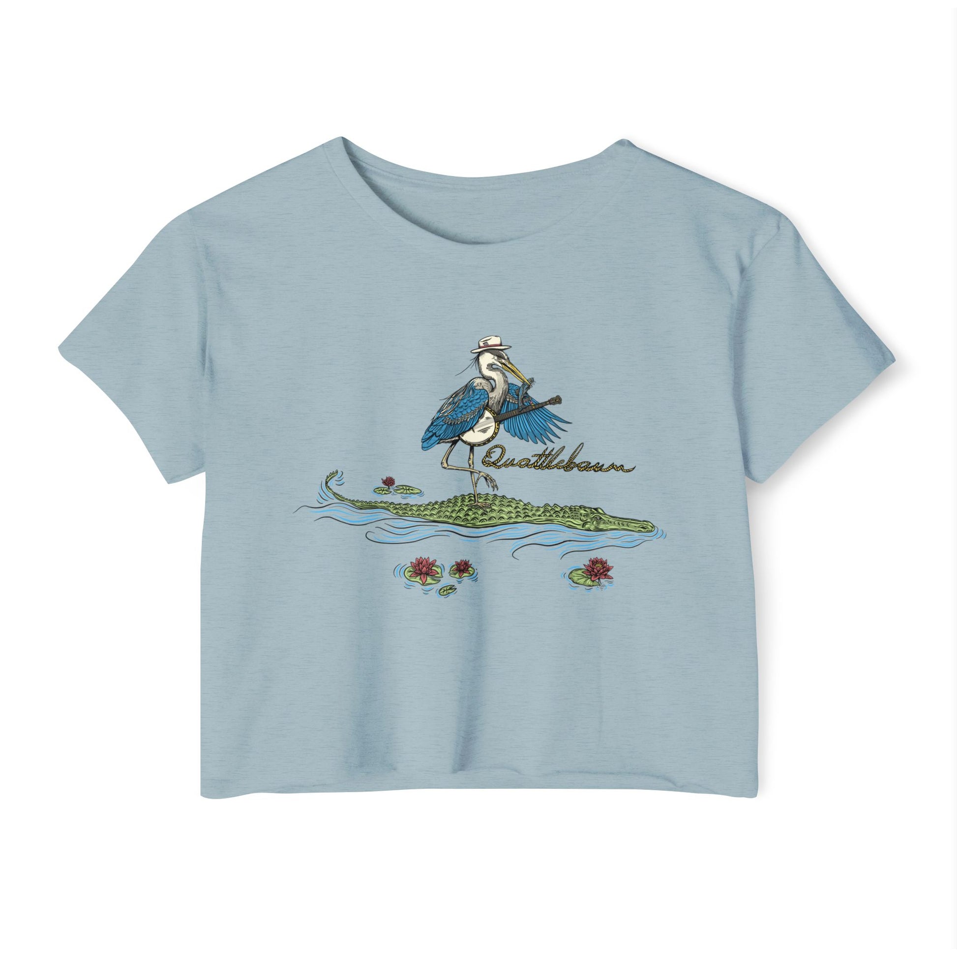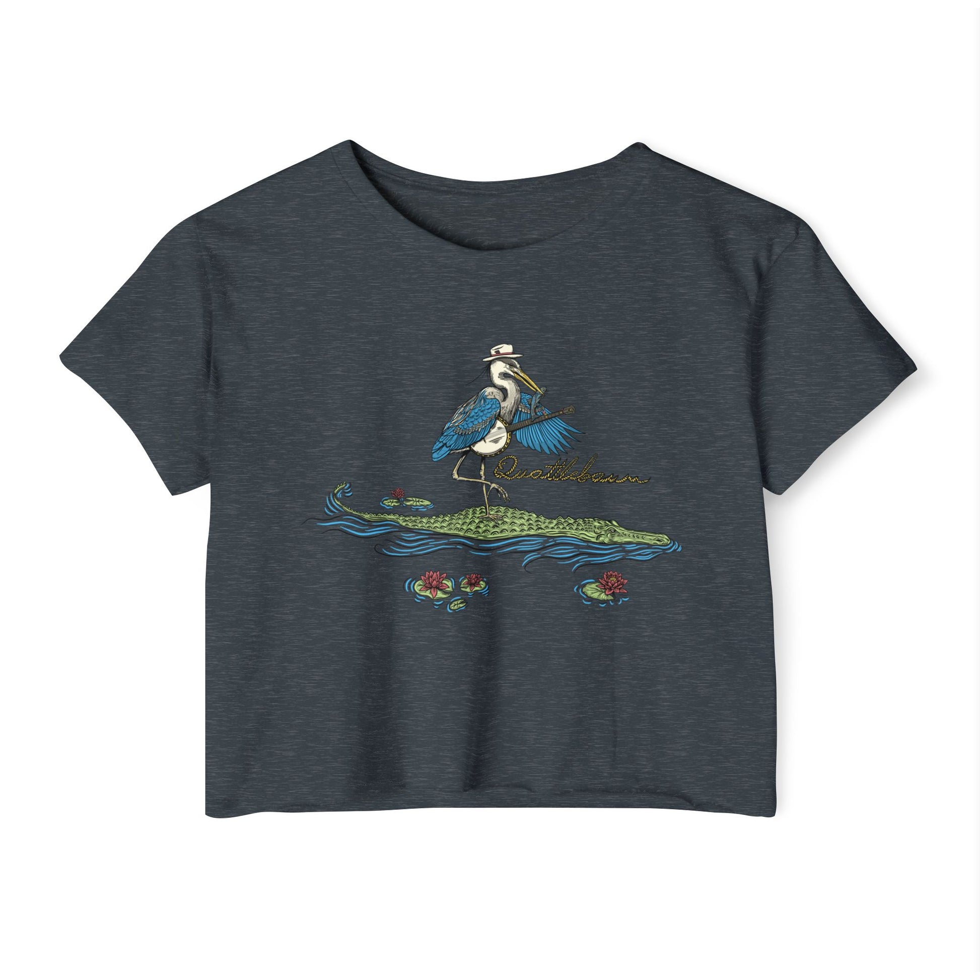 Blue Heron Playing Banjo on an Alligator ~ Quattlebaum Crop Top ~