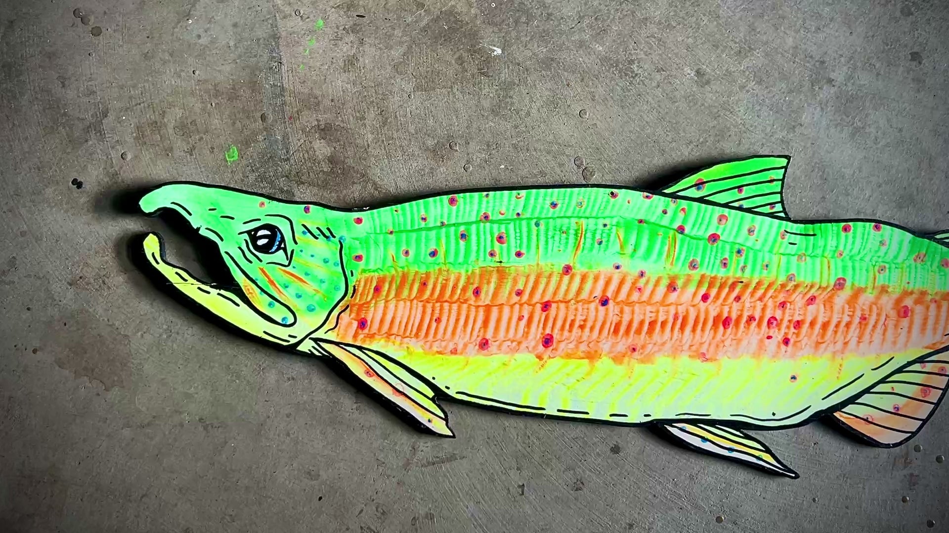 Psychedelic Keta/Dog Salmon ~ UV/Blacklight Plywood Art
